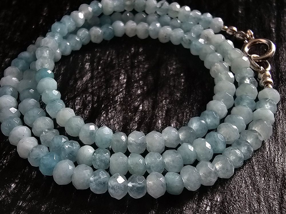 Aquamarin wird mit Frieden und Entspannung in Verbindung gebracht. Das Tragen einer Aquamarinkette soll Stress reduzieren und das emotionale Gleichgewicht fördern.